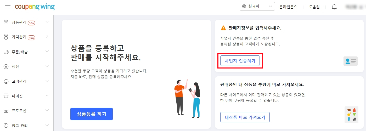 쿠팡 판매자 가입하기