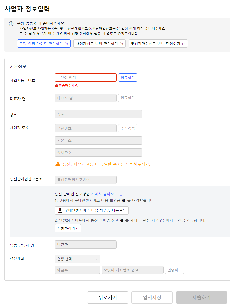 6. 사업자 정보입력 및 제출하기