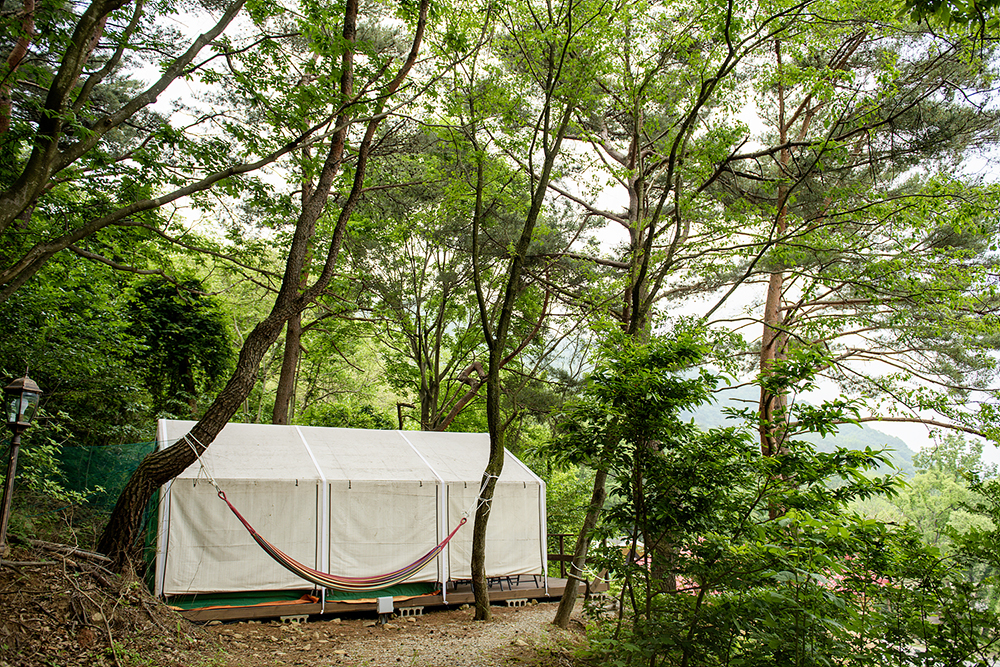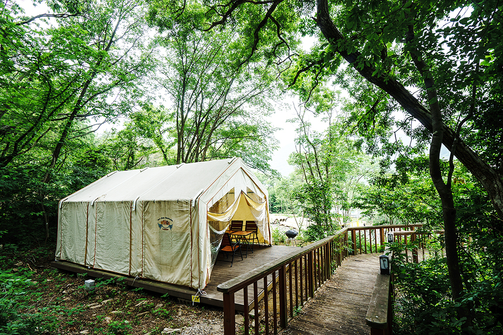 수목과 계곡이 어우러진 글램핑&캠핑장