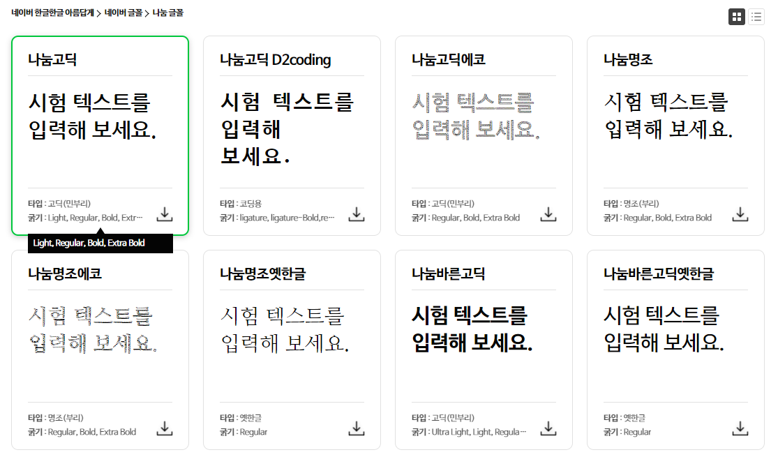 1. 네이버 글꼴 모음(https://hangeul.naver.com/2017/nanum)